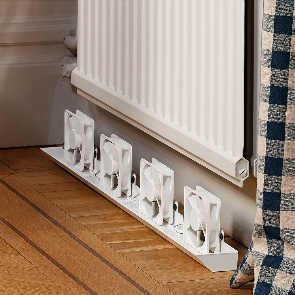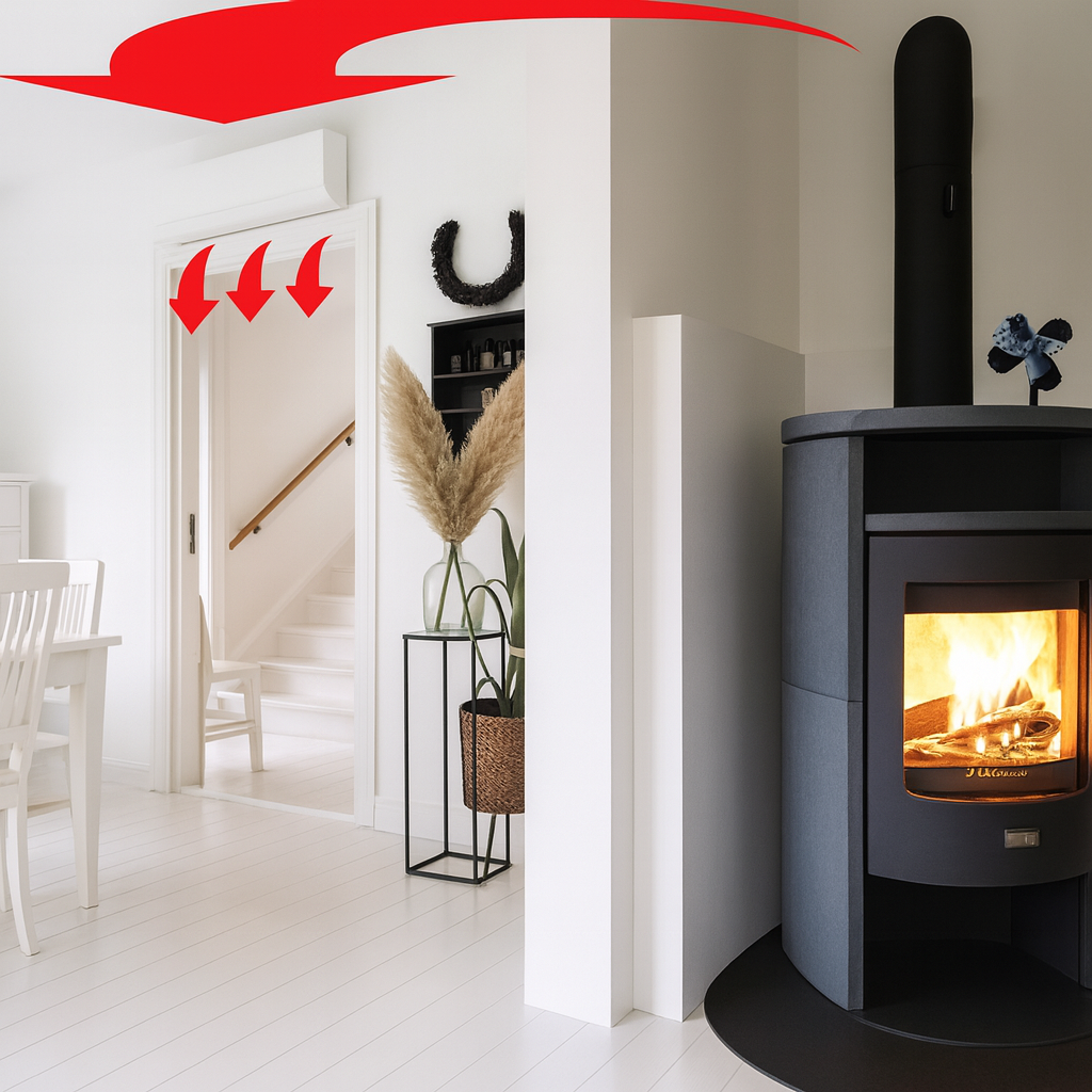 Har du kamin eller luftvärmepump? Då vet du att värmen ofta fastnar i taket eller i ett enda rum. Med vår Värmeförflyttare, som monteras diskret ovanför dörren, sprids överskottsvärmen effektivt till resten av huset. Resultatet blir en jämnare temperatur, mindre skillnad mellan rummen och bättre energianvändning.