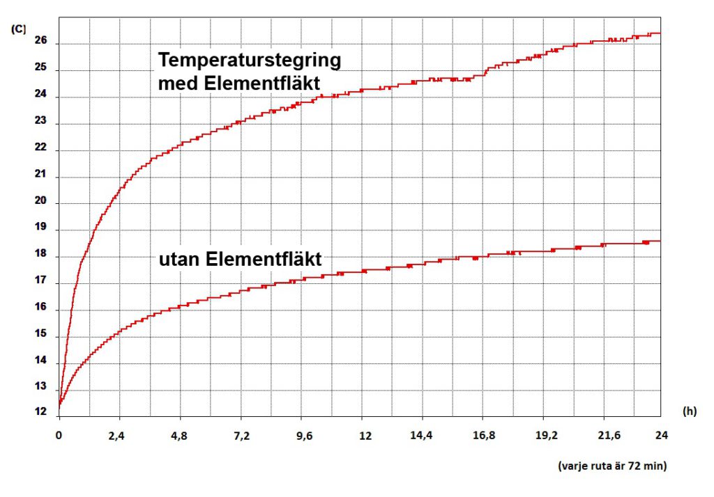 - Med Elementfläkten går uppvärmningen 10 gånger så fort, vilket gör det möjligt att göra kraftiga temperatursänkningar under till exempel natten.