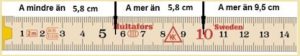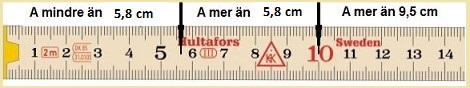Ett exempel på längden 85 cm – 105 cm, blir det verkliga exakt mått 102,5 cm. Om du lägger till en skarvbit blir det 107,5cm eller ta-bort en skarvbit då blir det 97,5 cm.